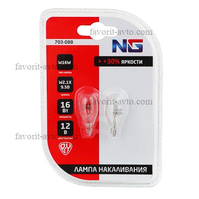 NG Лампа накаливания W16W T15, 12В, 16Вт, standart, W2.1x9.5d, 2шт/блистер (Original). 1/10 |