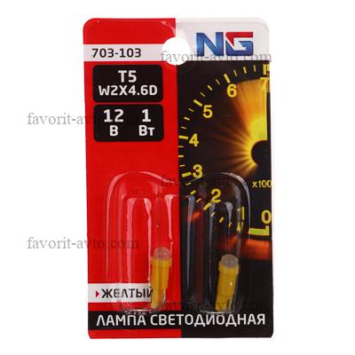 NG Лампа светодиодная T5 (2SMD), 12В, желтый, 2 шт., блистер |