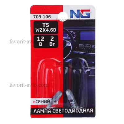NG Лампа светодиодная T5 (2SMD),12В, синий, 2 шт., блистер |