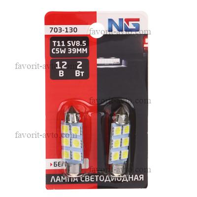 NG Лампа светодиодная T11, (6SMD-5050), 39 мм, 12В,белый, 2 шт., блистер |