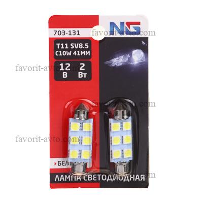 NG Лампа светодиодная T11, (6SMD-5050), 41 мм, 12В,белый, 2 шт., блистер |