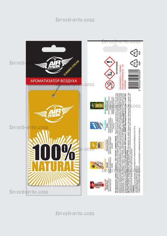 Ароматизатор AIR-max бумажный 100% NATURAL (Summer Dream). Композиция ароматов из цветочных и фруктовых запахов. /уп-10. 1/10/360 |