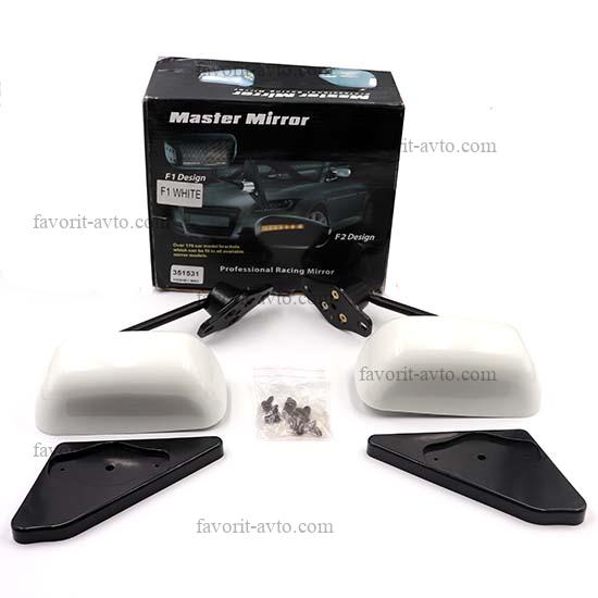 Зеркало боковое универсальное F-1 /БЕЛЫЙ/ с голубым зеркалом. Комп. 2шт. 1/12 |