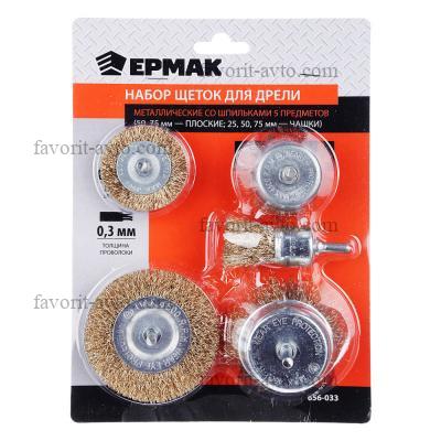 ЕРМАК Набор щеток металл со шпильками 5 пр (50,75мм -пл., 25,50,75мм- чашки). 1/10/40 |