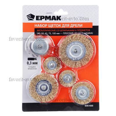 ЕРМАК Набор щеток металл со шпильками 6 пр (40,50,65,75,100мм -пл.,50мм-чашка). 1/5/40 |