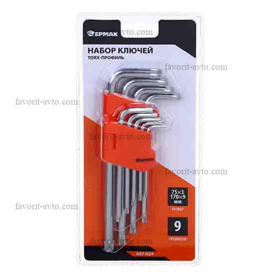 ЕРМАК Набор ключей TORX-профиль 9 пр., T10 - T50, длина 95 - 220мм. 1/10шт |