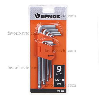 ЕРМАК Набор ключей - шестигранников 1,5-10мм.,9шт. 1/12/72 |
