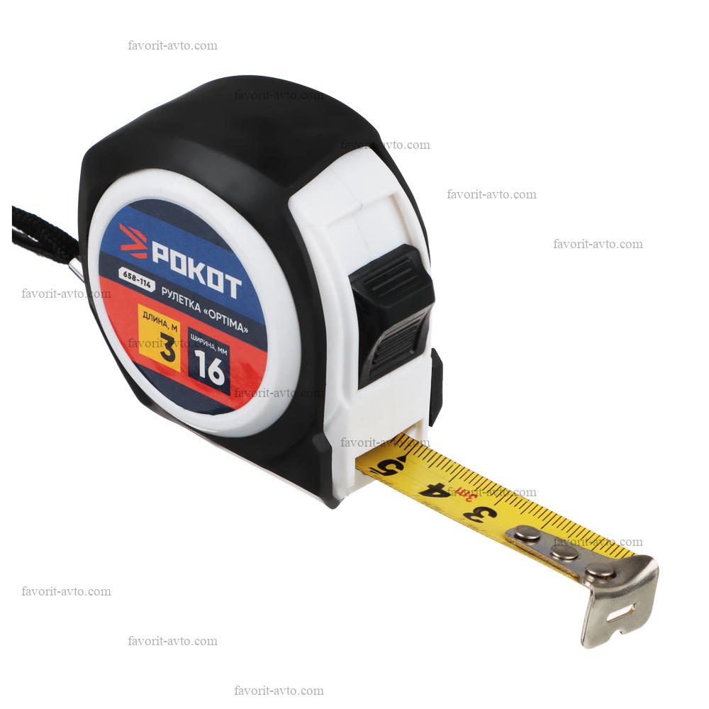 РОКОТ Рулетка "ОПТИМА", 3м х 16мм, одинарный зацеп, корпус PP+TPR. 1/12шт. |