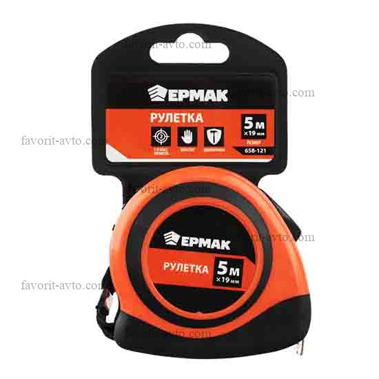 ЕРМАК Рулетка 5м/19мм, " Магнит", 3 фиксатора, обрезин. корпус. 1/12шт |