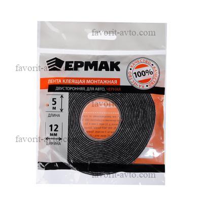 ЕРМАК Лента клеящая монтажная 2-х сторонняя, для АВТО, 12мм x 5м черная. 1/750 |
