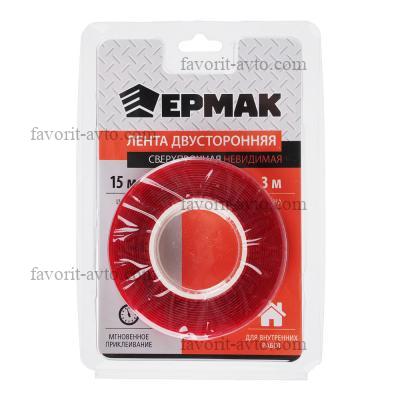 ЕРМАК Лента двусторонняя сверхпрочная невидимая 15мм х 3м |