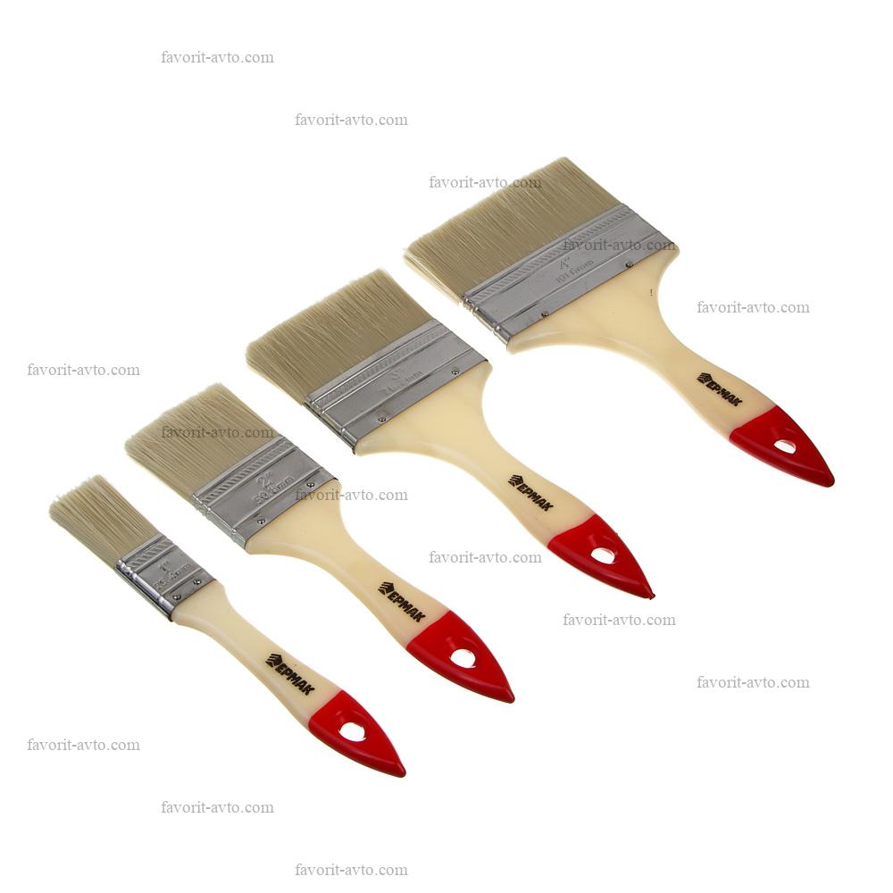 ЕРМАК Набор 4х малярных флейцевых кистей смешанный ворс: 25/50/70/100мм |
