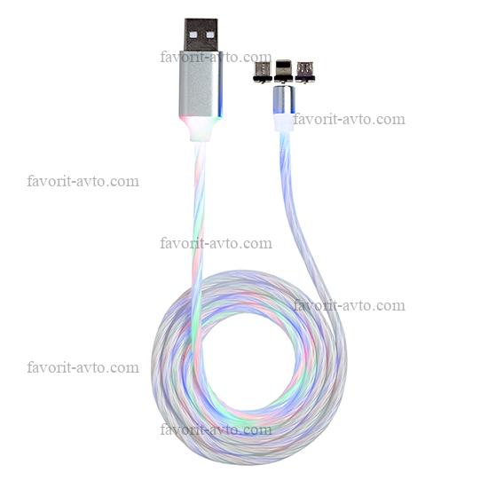 Магнитный кабель USB с LED : microUSB - iPhone - Type-C, белый. Арт.: G5026-WHITE |