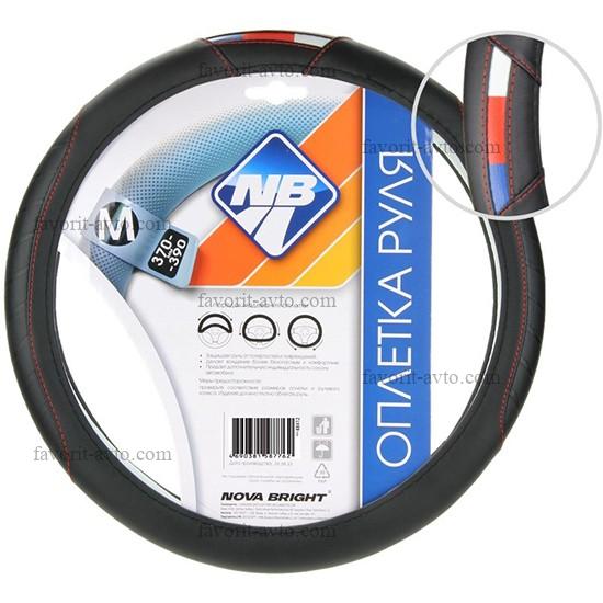 Оплетка рулевого колеса "Nova Bright" (M) экокожа, черная, красная строчка. 1/25 |