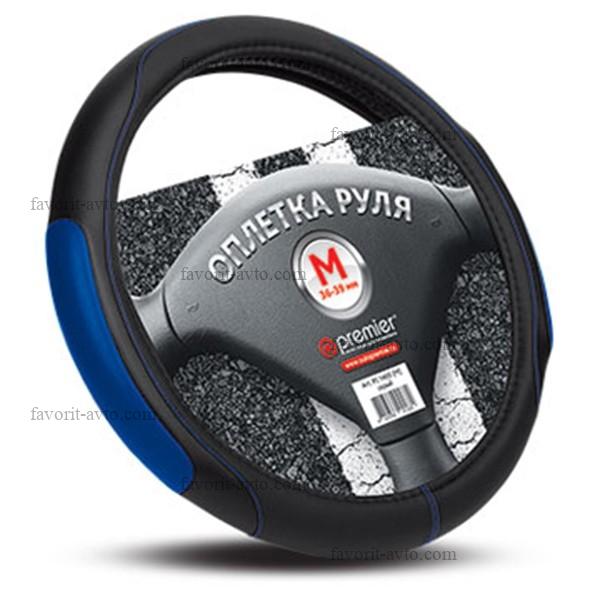 Оплётка руля PREMIER, глянцевая, /ЧЁРНЫЙ-СИНЯЯ нить/, размер (М), 1/15, BN1100М. 1/25 |
