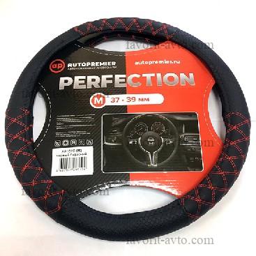 Оплётка руля PREMIER, кожа PU, /ЧЁРНЫЙ+ красный ромб/, размер (М), 1/25, AP1020M |