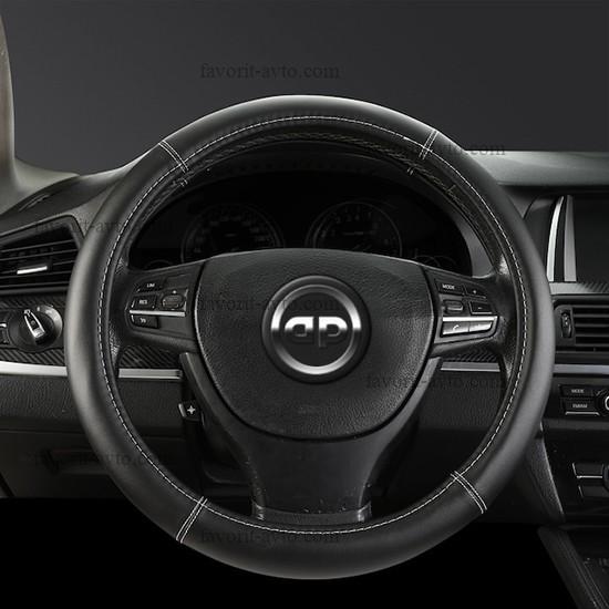 Оплётка руля AUTOPREMIER, гладкая эко кожа PU, чёрный/белая нить, размер (М), 1/25, LC1000M |