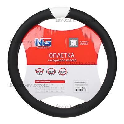 NEW GALAXY Оплетка руля, экокожа, черный, белая вставка, размер М. 1/25 |