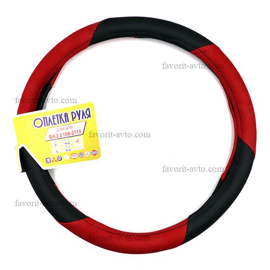 Оплетка руля, кож-зам /ЧЁРНЫЙ перфорация+КРАСНЫЙ/, размер М - 37-38 см. "Фаворит-авто". 1/25 |