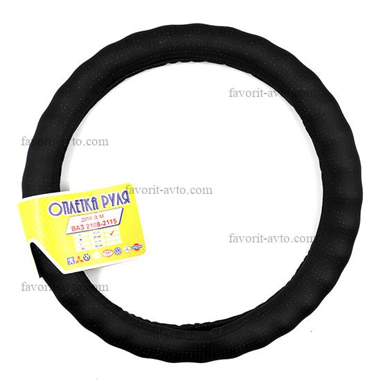 Оплетка руля, кож-зам /ЧЁРНАЯ перфорация ПОД ПАЛЬЦЫ/, размер М - 37-38 см. "Фаворит-авто". 1/20 |