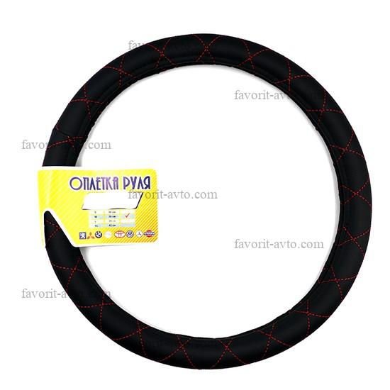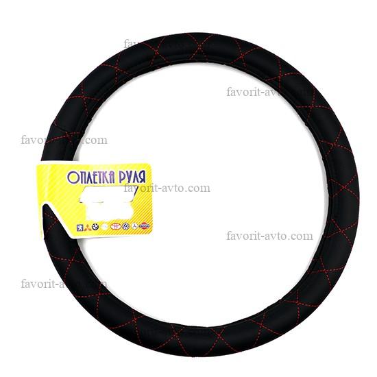 Оплетка руля, размер 50 см, кож-зам /ЧЁРНЫЙ+ КРАСНЫЙ ромб/. "Фаворит-авто". 1/25 |