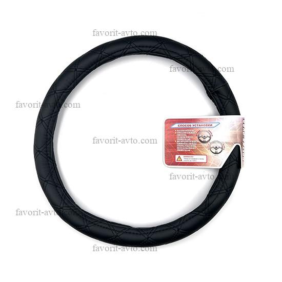 Оплетка руля, размер 47 см, кож-зам /ЧЁРНЫЙ+ ЧЕРНЫЙ ромб/. "Фаворит-авто". 1/25 |