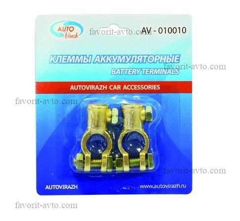 В пути! Клеммы АКБ "+", "-" (латунь) 2 шт. в блистере "AUTOVIRAZH". 1/20 |