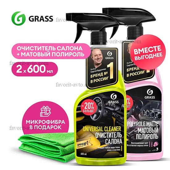 GraSS 281 Набор подарочный автохимии UNIVERSAL CLEANER и POLYROLE MATTE (Очиститель салона, глянцевая полироль, микрофибра). уп-ка прозрачный пакет. |