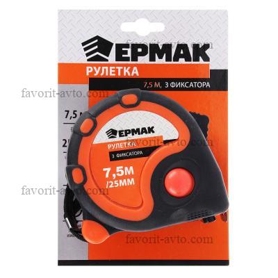 ЕРМАК Рулетка, 3 фиксатора, двукомп. корпус, 7,5м х 25мм. 1/6 |