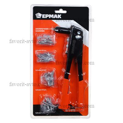 ЕРМАК Заклёпочник с набором заклёпок 225 мм. 2,4мм*20шт/ 3,2*20шт / 4,0*10шт/ 4,8*10шт |