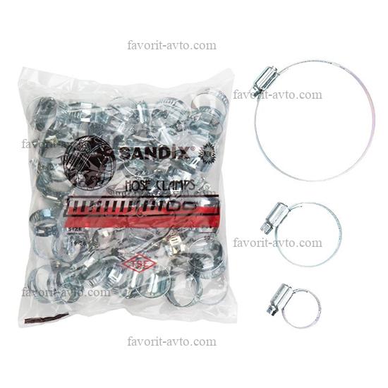 Набор червячных хомутов, сквозная просечка, от 8 до 38 мм, нерж. сталь, 64 шт |