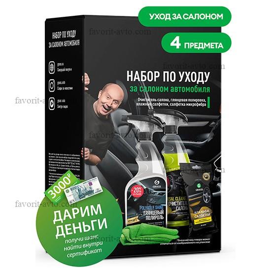GraSS 195 Набор подарочный по уходу за салоном автомобиля (Очиститель салона, глянцевая полироль, влажные салфетки, салфетка микрофибра). Арт. 800625 |