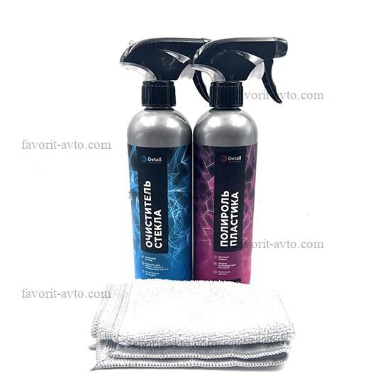 DETAIL 292 Набор подарочный для салона и стёкл ( Полироль пластика, очиститель стекл, салфетка). уп-ка прозрачный пакет. |