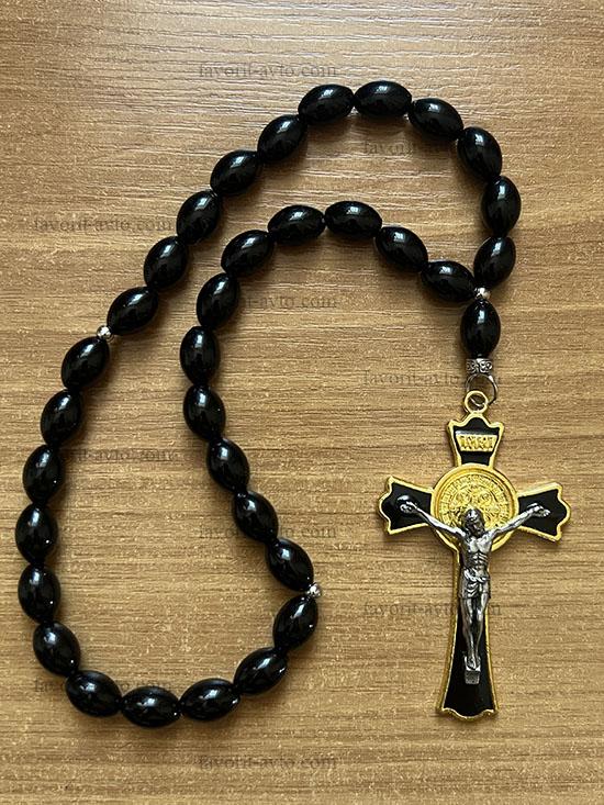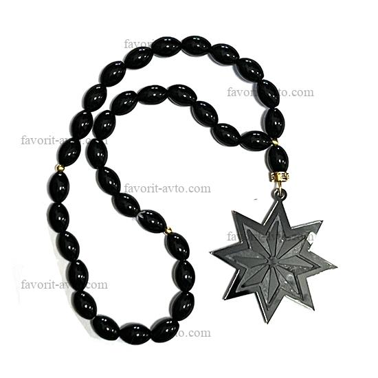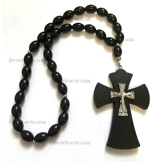 Подвеска на зеркало заднего вида, КРЕСТ крупный (ЧЕРНЫЙ), четки (черные) |