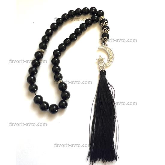 Подвеска на зеркало заднего вида, ИКОНА с кисточкой (Николай Чудотворец), четки (черные) |