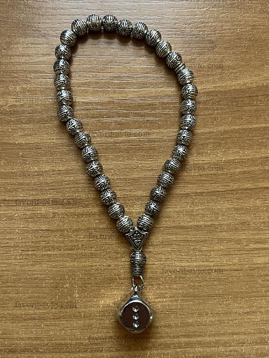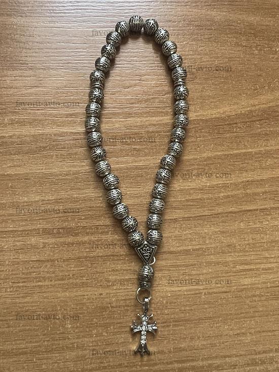 Подвеска на зеркало заднего вида, КРЕСТ(серебро) крупный деревянный, четки (черные) |