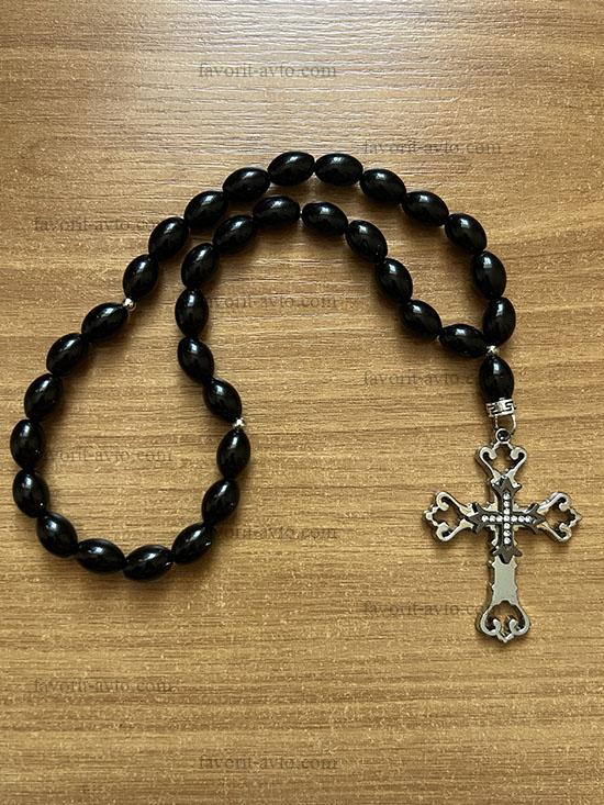 Подвеска на зеркало заднего вида, КРЕСТ крупный деревянный, четки (черные) |