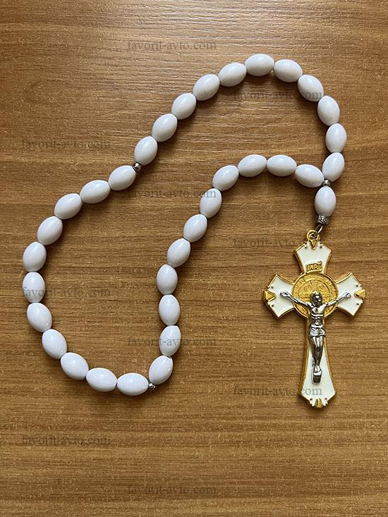 Подвеска на зеркало заднего вида, КРЕСТ крупный (БЕЛЫЙ), четки (белые) |