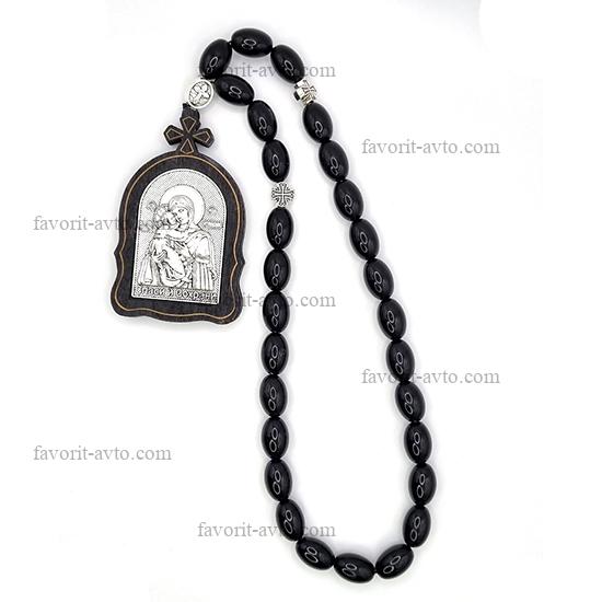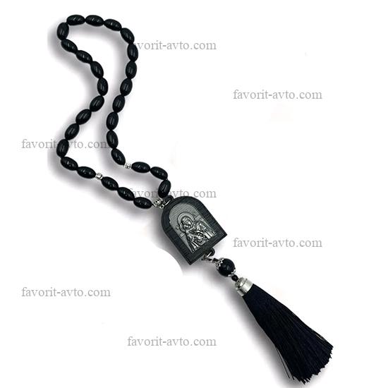 Подвеска на зеркало заднего вида, ИКОНА (Владимирская Богоматерь), четки (черные) |