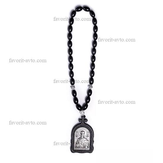 Подвеска на зеркало заднего вида, ИКОНА (Николай Чудотворец), четки (черные) |