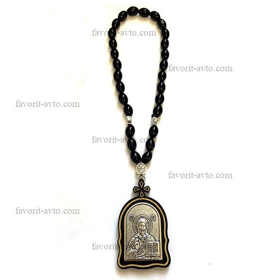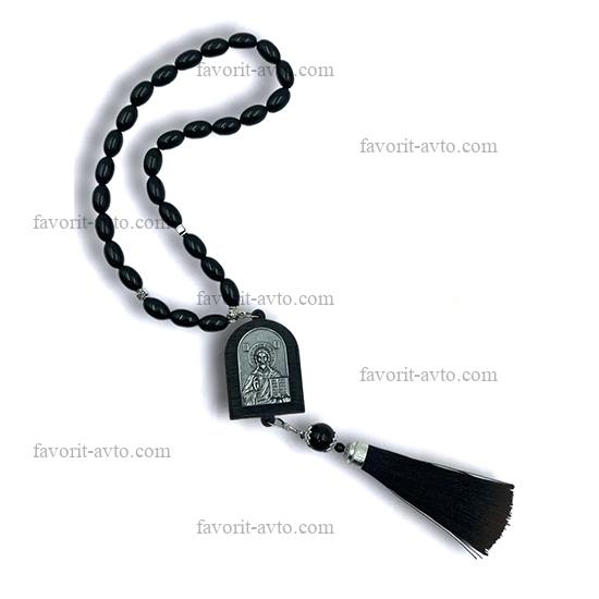 Подвеска на зеркало заднего вида, ИКОНА с кисточкой (Исус Христос), четки (черные) |