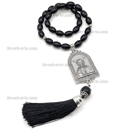 Подвеска на зеркало заднего вида, ИКОНА МЕТАЛЛ с кисточкой (Исус Христос), четки (черные) |