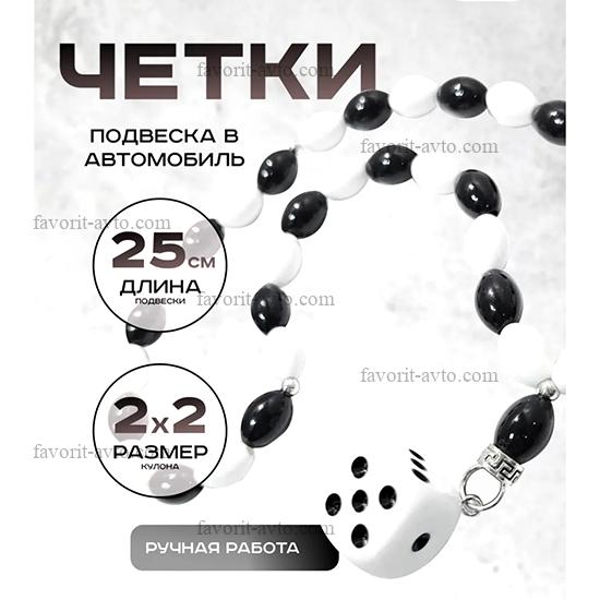 Подвеска на зеркало заднего вида, КУБИК, четки (черные+белые) |