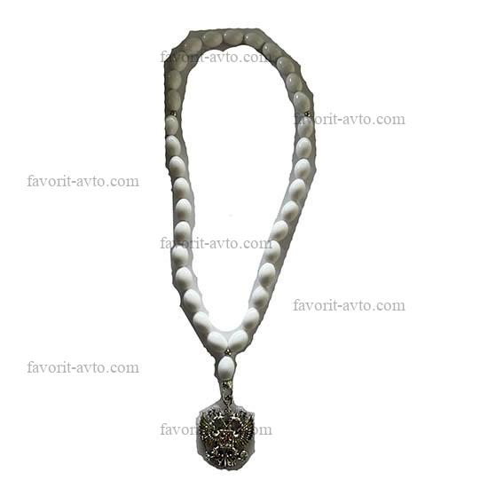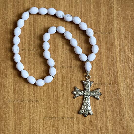 Подвеска на зеркало заднего вида, КРЕСТ с крупным камнем (ПЛАТИНУМ), четки (белые) |