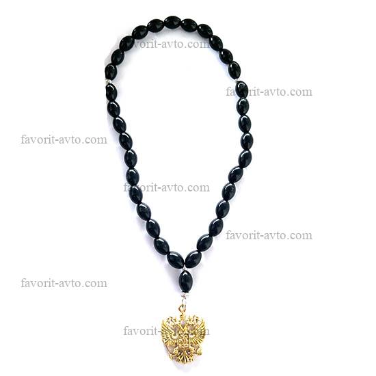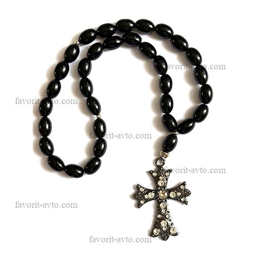 Подвеска на зеркало заднего вида, КРЕСТ с крупным камнем (ПЛАТИНУМ), четки (черные) |