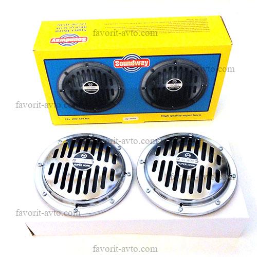 Сигнал звуковой электрический AutoHORN W-1038 Диск 120 мм /ХРОМ/ 12V. Комп. 2 шт. 1/20 |