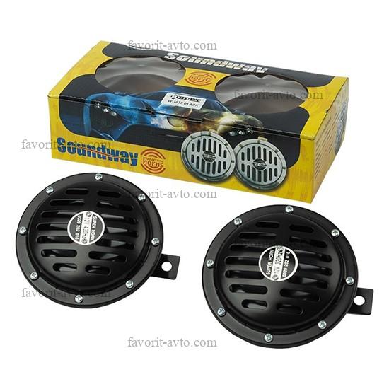 Сигнал звуковой электрический AutoHORN W-1046 Диск 12V /ЧЁРНЫЙ/ d-15 см. Комп. 2 шт. 1/8 |