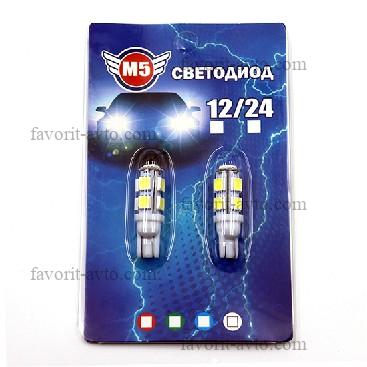 Светодиод Т10 - 9SMD 5050 белый (блистер, Комп.: 2шт). 1/1000 |