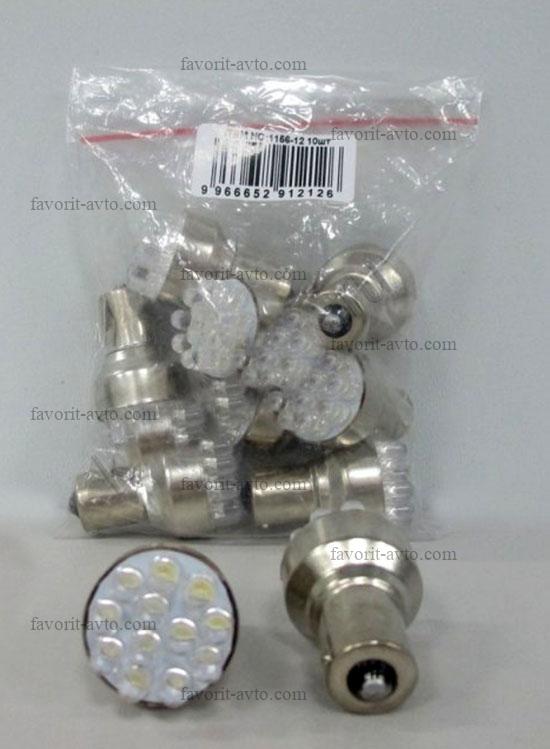Лампа светодиодная 1156-12 v (21w) BA15s (1конт) 12 диодов, белая (поворот, стоп-сигнал). Мин.8 шт. 1/10/300 |