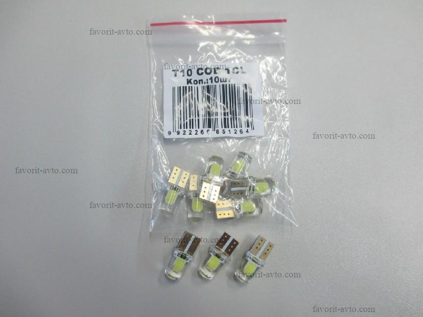 Новинка! Лампа светодиодная Т10 (W2,1-9,5d) белая, 2 COB диода FL, (б/цокольная) 12v. Арт.: T10 COB FL |